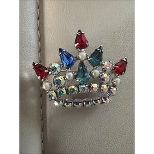 Vintage B. David Mother's Crown Multicolored Rhinestone Gold Tone Brooch Pin