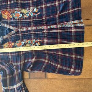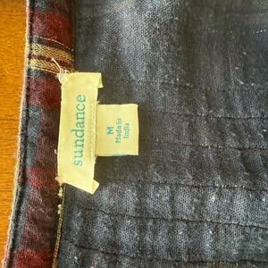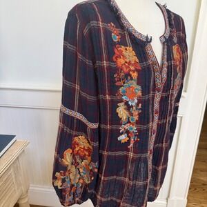 Sundance Womens Plaid Embroidered Gauze Blouse Navy Burgundy Metallic Medium