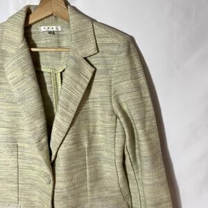 cAbi yellow gray heathered padded shoulders women's size 10 knit blazer formal