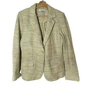 Crafted with comfort in mind, the knit material ensures a cozy yet polished feel, ideal for transitioning between seasons. Whether you're heading to the office, a special event, or simply want to elevate your everyday outfit, this size 10 women's blazer is sure to become a favorite. Its unique color combination allows for easy pairing with a variety of tops and bottoms. Don't miss out on adding this fabulous and flattering piece to your collection!