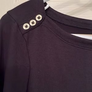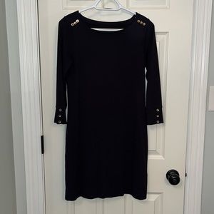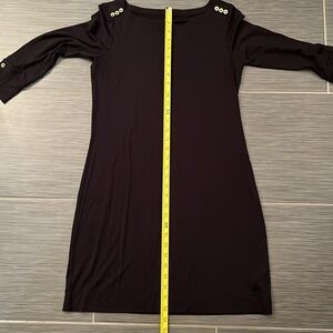 Lilly Pulitzer Black 3/4 Sleeves Sophie Dress Sz Small UPF 50+ Sun Protection. See pictures for approximate measurements. Button details on shoulders and cuffs. Dress is UPF 50+ for protection in the sun. Gently worn and in excellent condition.