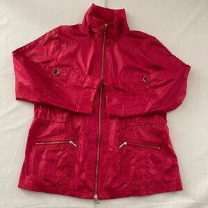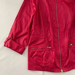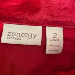Zenergy By Chico's Womens Red Roll Tab Sleeve Nylon Windbreaker Jacket Sz 2 US L