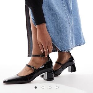 NWOT ASOS Design patent leather Mary Jane heels in classic black. Trendy balletcore / whimsigoth style with delicate straps and a chunky block heel for comfort and stability. Perfect for dressing up denim, skirts, or dresses.