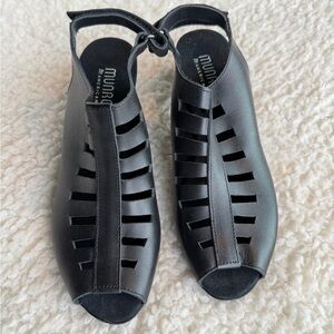 Munro Abby Nubuck Leather Slingback Heels Black Comfort Sandals 8.5