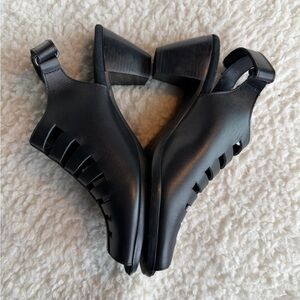 Key Features: Peep toe design, modern cutout upper, slingback strap, shock-absorbing heel, natural rubber sole, comfort footbed, supportive block heel