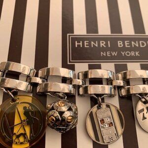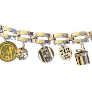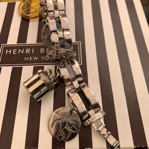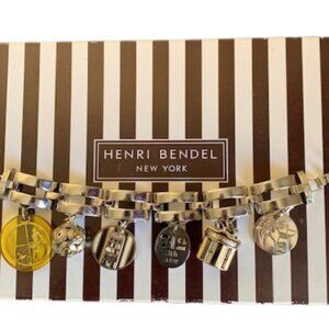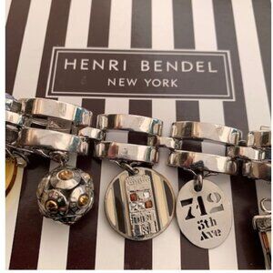 Rare find! Silver charm bracelet from iconic NYC retailer Henri Bendel. The bracelet is in excellent vintage condition and has six charms :