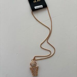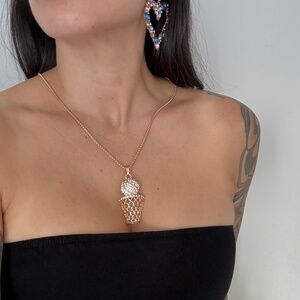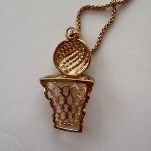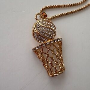 14Kt gold plated necklace with cubic zirconia basketball hoop charm