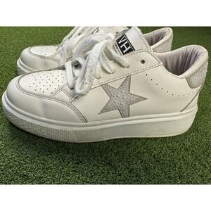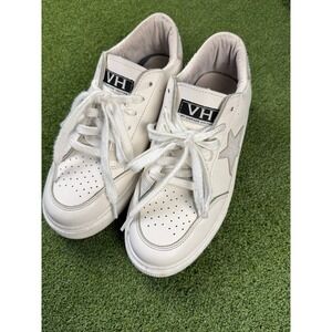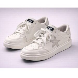 Stylish Vintage Havana sneakers. White base with silver star and heel accents. Comfortable and trendy.