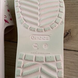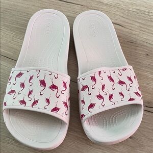 Crocs Flamingo Print Slide Sandals Iconic Comfort Pool Beach Womens Size 7