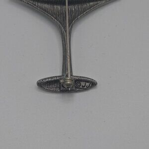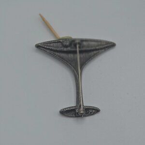 Add a touch of retro charm to your collection with this eye-catching brooch, featuring a martini glass with an olive toothpick design. Crafted from silver tone/pewter, enamel, and wood, this piece is signed “JJ” for Jonette Jewelry—a mark of quality and creativity.