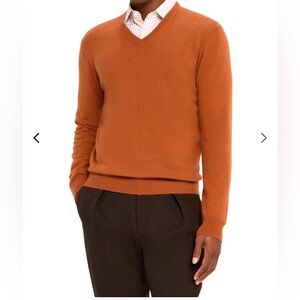Neiman Marcus Men's Cashmere Sweater V-neck Heathered Orange Sz L