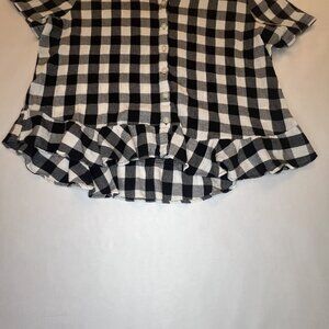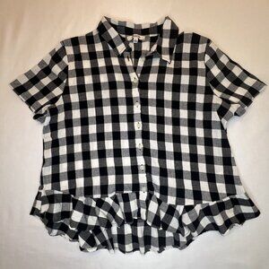 Madewell Women's Size Large Buffalo Check Black White Plaid Short Sleeve Blouse