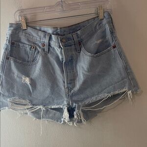 Levi's 501 Light Blue Distressed Denim Cutoff Shorts