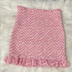 Billabong Light Flaws Floral Eyes On You Ruffle Skirt Smocked Pink White Size S