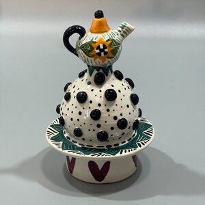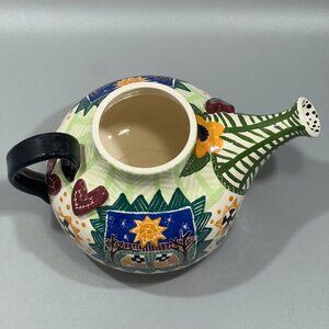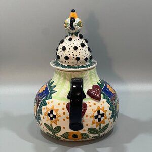 VTG Meg Johnson Whimsical Teapot Hand-painted Floral Handmade Ceramic Pottery.