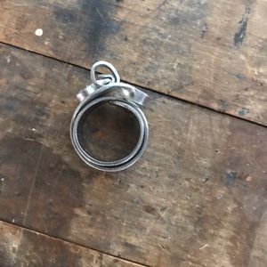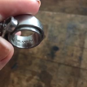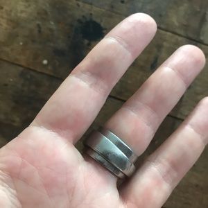 Vintage stainless steel silver tone turned fork ring. Gently worn. Versatile enough to wear everyday and to cocktail parties and other special occasions.