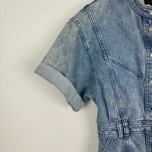 NWOT Topshop Acid Wash Denim Shirt Dress Y2K Utility Snap Button 6