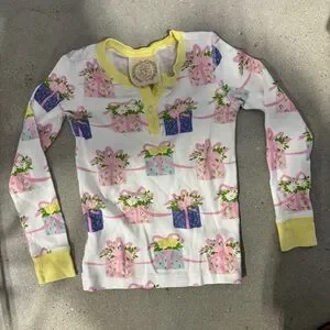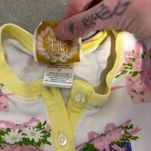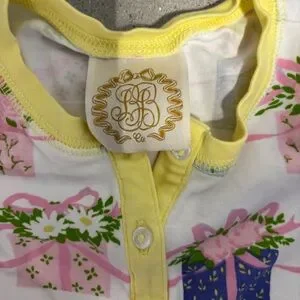 Charming floral shirt with yellow trim. Soft and comfortable for babies.