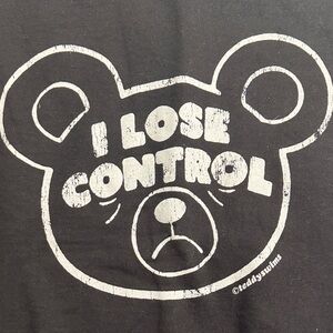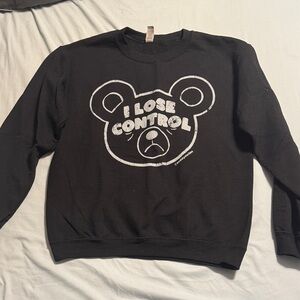 Black crewneck sweatshirt with large white bear graphic and text "I LOSE CONTROL". Casual, bold graphic style. Soft heavyweight fabric. Easy to pair with jeans or joggers.