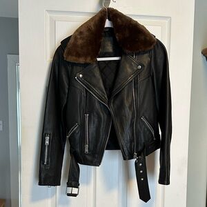 ALLSAINTS Rigby Lux Faux-Fur Trim Leather Biker Jacket