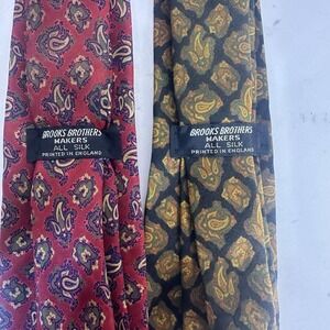 Set Of 2 Brooks Brothers Makers Silk Tie Vintage Paisley Yellow Red Old Money