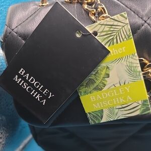 Badgley Mischka Black Quilted Crossbody with Gold Chain