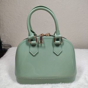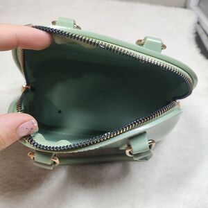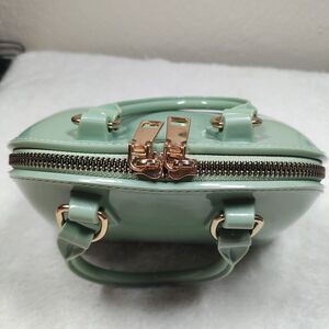Glossy Green Double Handle Small Purse Gold Zipper - Patent Leather Finish Like