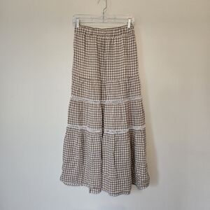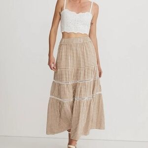 Madewell Gingham Tiered Linen Blend Maxi Skirt