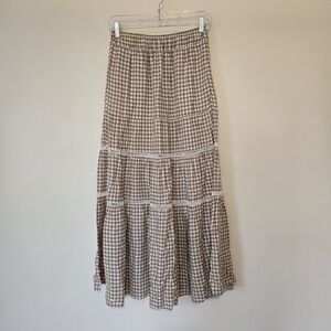 Madewell Gingham Print Tiered Maxi Skirt with Pockets