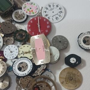 Buyer takes All.Lot of assorted watch faces and movements. Variety of colors and styles. Great for crafts, jewelry, or repairs.