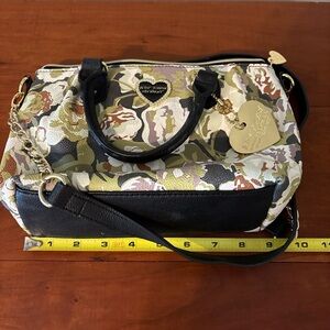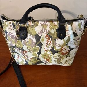 Betsey Johnson Pinch Satchel Xbody handbag in Olive floral colorway. Original Betsey Johnson tag included but detached (see photos). Bag appears unused and is in excellent, like-new condition.