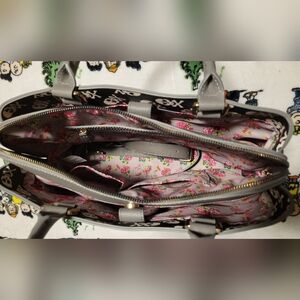 Stylish gray handbag with a unique skull embossed design. Perfect for adding an edgy touch to any outfit.