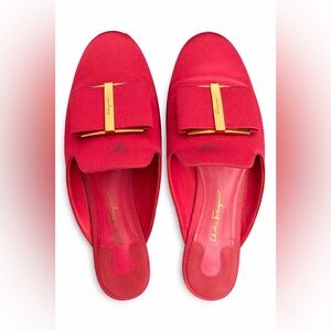 Salvatore Ferragamo Red Mules with Gold Accent