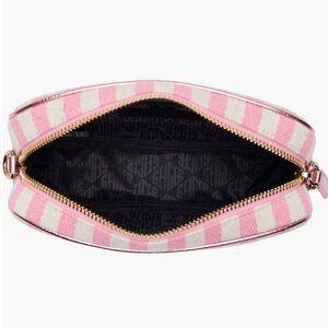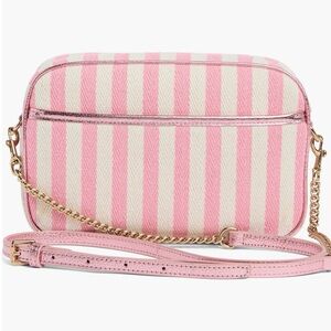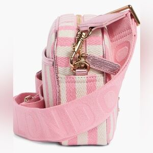 Gleaming hardware adds a touch of glamour to this compact crossbody bag finished with pink stripes for sunny-day style.