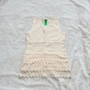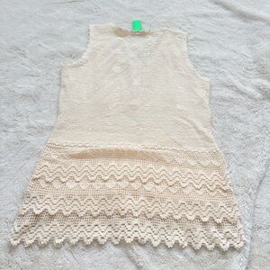 100% Cotton Lace Knit Tank XS | Boho Cottagecore Textured Cream Summer Top