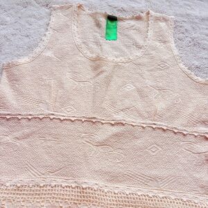 This 100% cotton lace‑detailed top, Size XS, taps into several high‑demand style trends—boho feminine, cottagecore romance, soft‑girl minimalism, summer texture layering, and natural‑fiber essentials. The intricate knit pattern, scalloped trim, and delicate lacework create a dreamy, artisan‑inspired look that feels both airy and elevated.