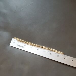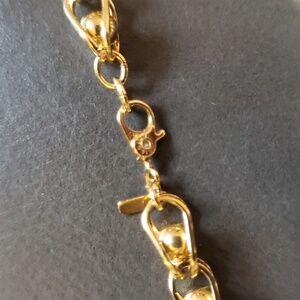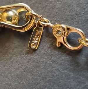 Vintage Monet signed Gold Tone bracelet. Gold linked chain with caged ball / bead inside. No signs of wear or tarnish. Excellent condition and comes in a jewelry gift box.