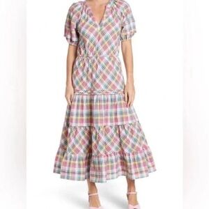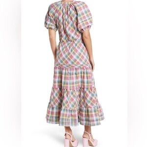 Betsey Johnson Pink Plaid Midi Dress Puff Sleeve