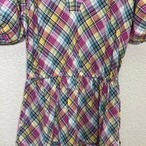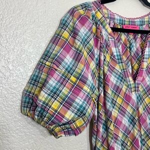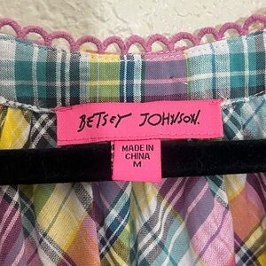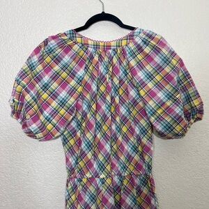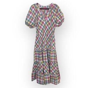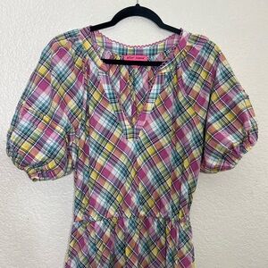 Betsey Johnson Pink Plaid Midi Dress Puff Sleeve Size M