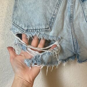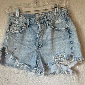 Agolde light wash extremely distressed shorts. Good, pre-owned condition with no noticeable flaws!