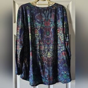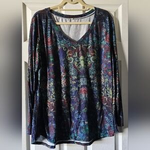 Add a splash of color to your wardrobe with this vibrant floral long sleeve top. Perfect for any occasion, it combines style and comfort effortlessly.