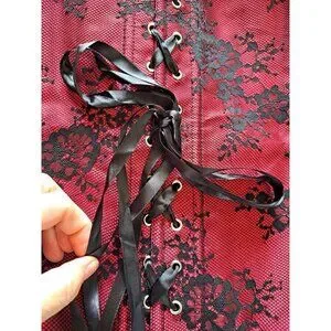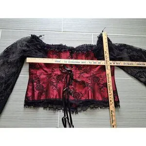 This corset-inspired blouse features a structured overbust design with elegant lace bell sleeves and a satin ribbon lace-up front, blending gothic and vintage aesthetics. Please review all measurements
