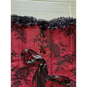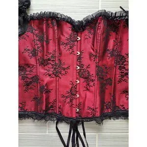 Gothic Red & Black Lace Off-Shoulder Corset Top Bell Sleeves Bustier Blouse 7XL