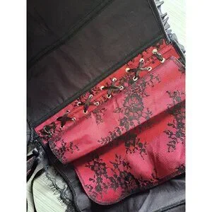 • Red and black floral lace overlay