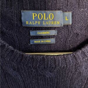 Polo Ralph Lauren Cashmere Cable Knit Sweater Navy Blue Crewneck Women’s L