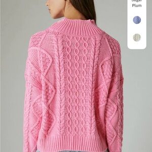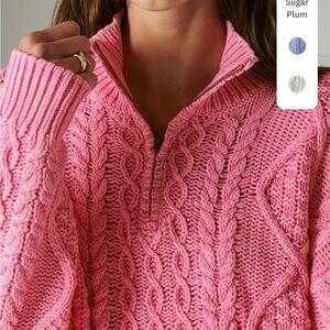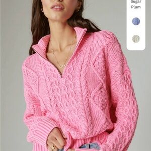 Lucky Brand Cable Knit Quarter Zip Pink Turtleneck Cotton Blend Sweater