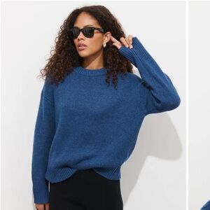 Dropped shoulders relax this crewneck sweater knit for a comfortably slouchy fit that surrounds you in the cozy warmth of its soft merino-wool-blend yarns.