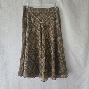 Elevate your wardrobe with this chic plaid A-line skirt. Featuring a stylish brown and tan pattern, it's perfect for any occasion.