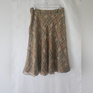 Vtg Jones New York 100% Silk A-Line Skirt in Brown and Tan