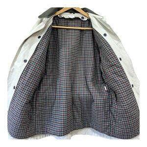 Button in/out lining - green plaid flannel lining, tag reads "PrimaLoft Synthetic Down"